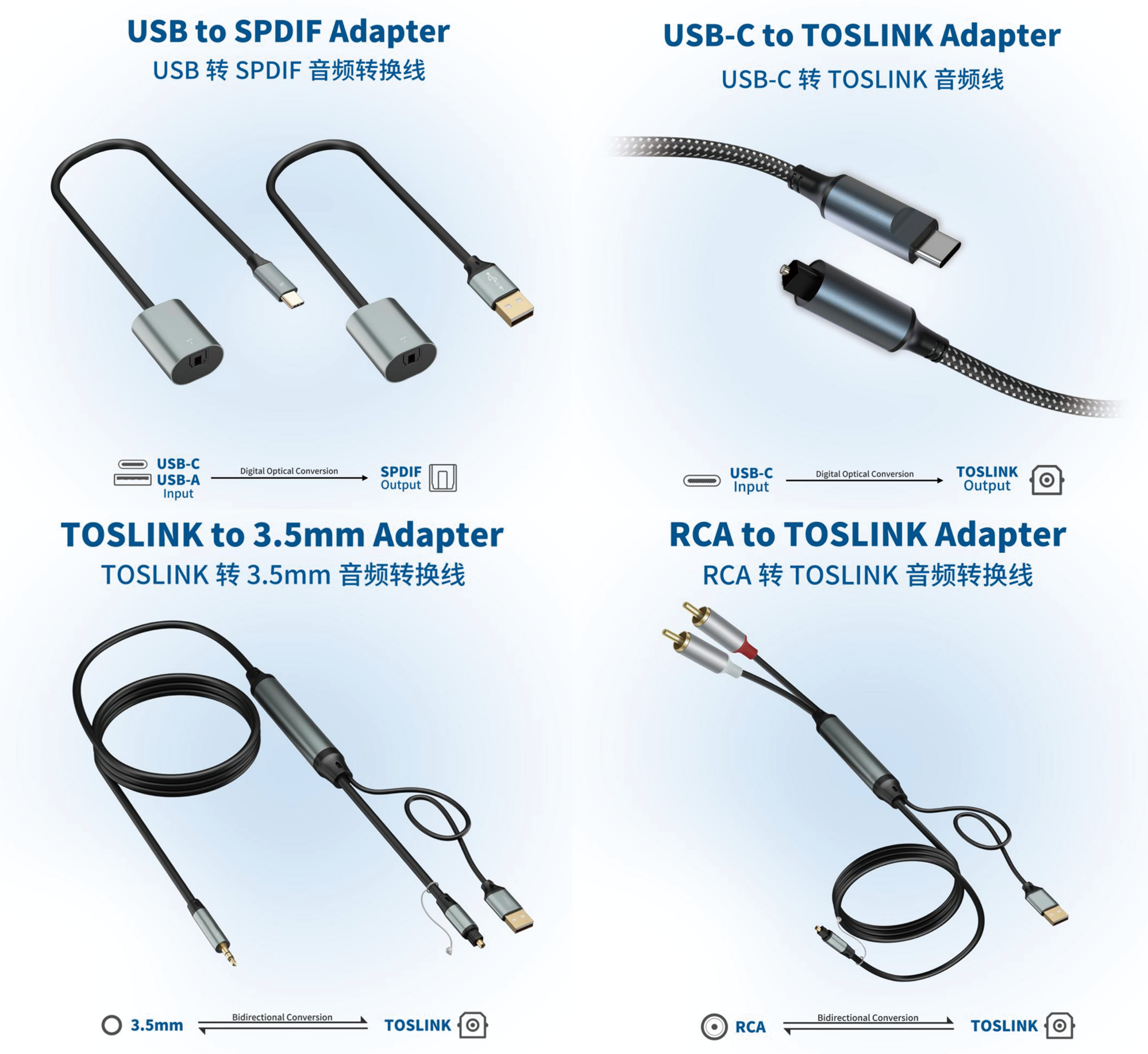 - RCA ⇄ TOSLINK (bi-directional)
